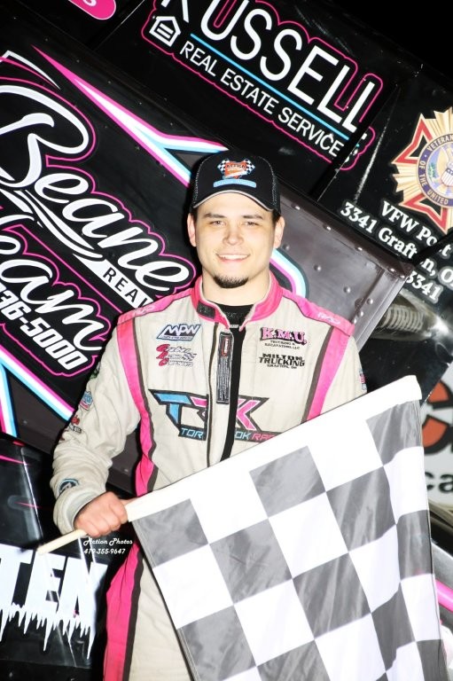 Thomas, who started third in the 30 lap Callie’s Performance Products 410 Sprint feature, took the lead from Brandon Spithaler on lap six and despite a couple of cautions pulled away for the victory to kick off the All Pro Aluminum Cylinder Heads/Kistler Racing Products Attica Fremont Championship Series presented by the Baumann Auto Group season. Following Thomas to the checkers was 11th starter Parker Price Miller, Bryce Lucius, Darin Naida and Jordan Ryan.